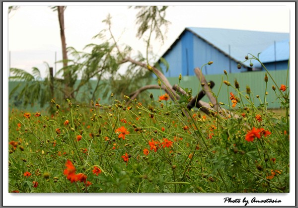 路上到處是連根拔起的行道樹,時代大道上波斯菊仍迎風搖曳。