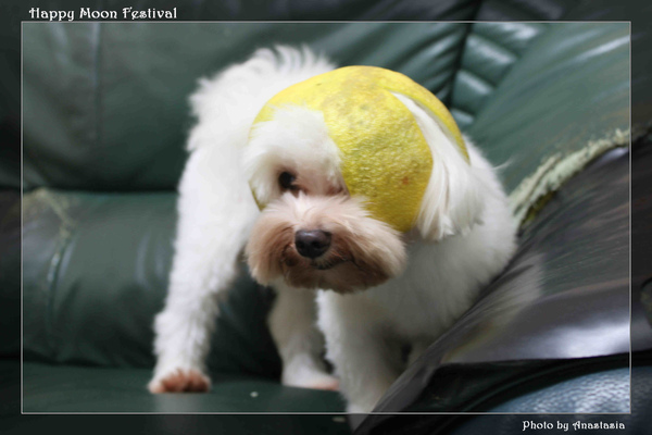 中秋節,兩個小朋友也應景地戴上柚子帽,小波很慌張,毛小胖則是心不甘情不願。XD