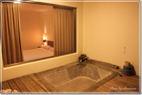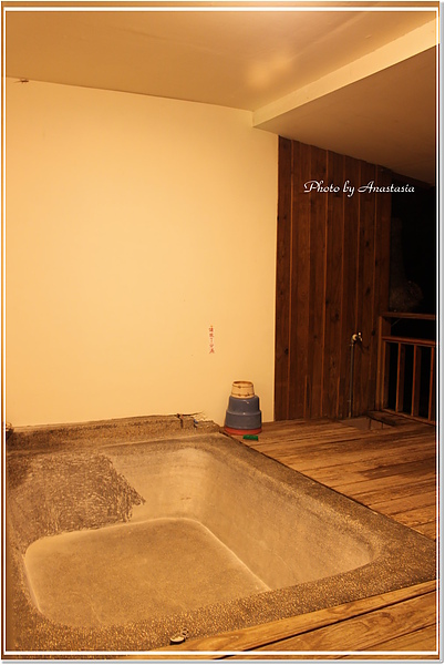 戶外陽台半露天泡湯池,泡湯池還蠻大的,磨石子材質。
