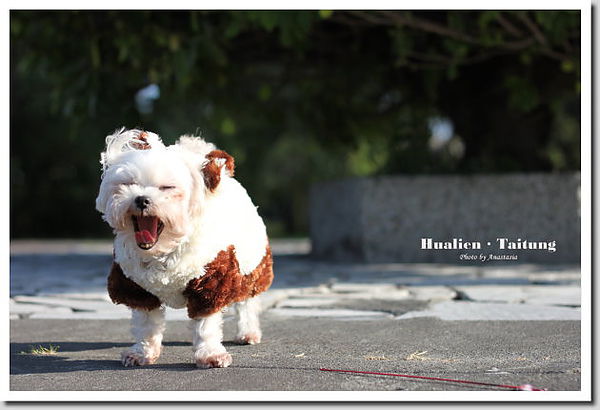 一樣在汪汪叫的小波,花東小旅行幫他穿上帥氣的鋪棉飛行風外套,超帥的。