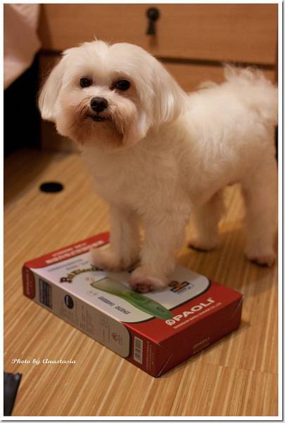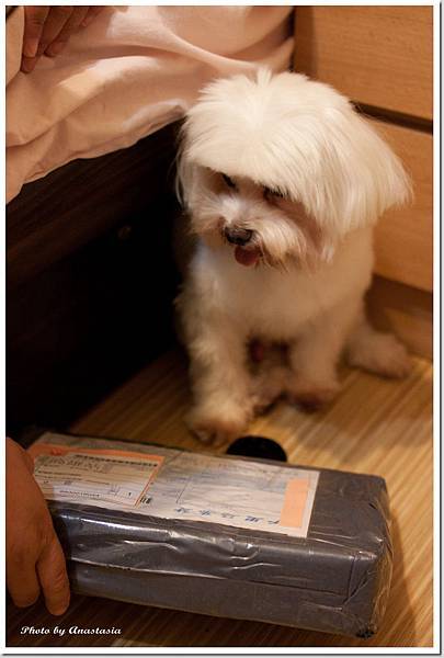 拆開後來一張,這時候的小波還不知道糾竟~這是什麼東西,整個很放鬆。