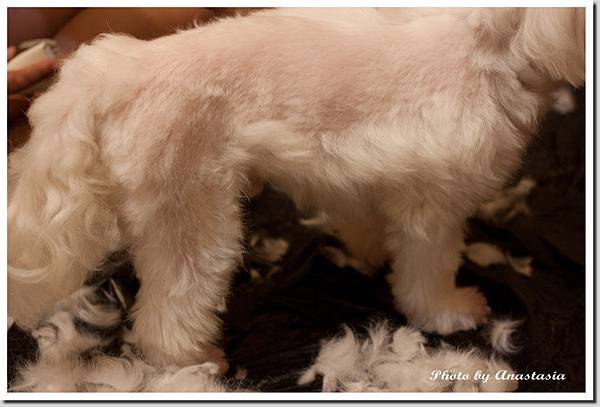 無奈第一次自己幫毛小孩剃毛,技術尚未純熟。