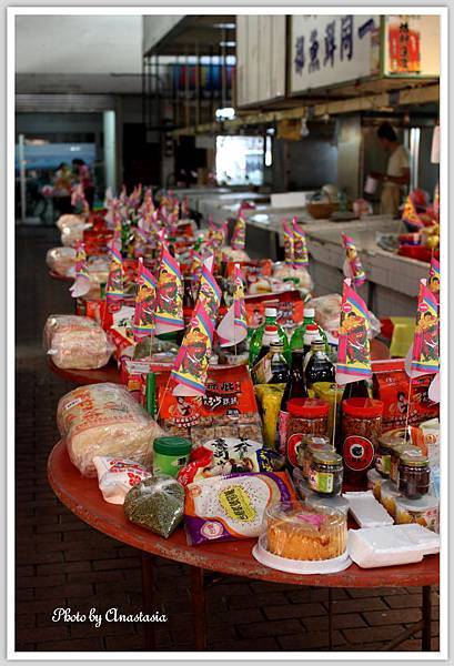 整個攤位就是供桌,滿滿的各式各樣豐富供品,是虔誠的感謝。