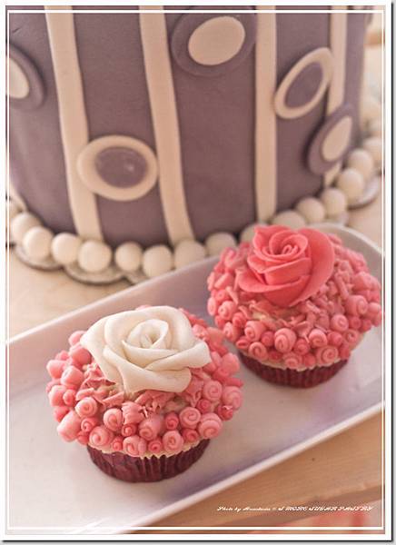 (粉紅色糖霜蛋糕也好適合拍照,花瓣非常精緻,珠寶盒般奢華。)