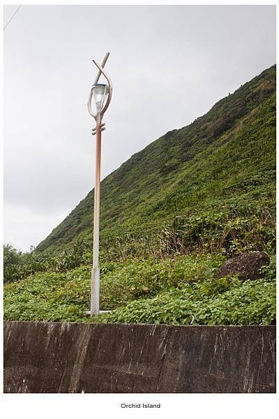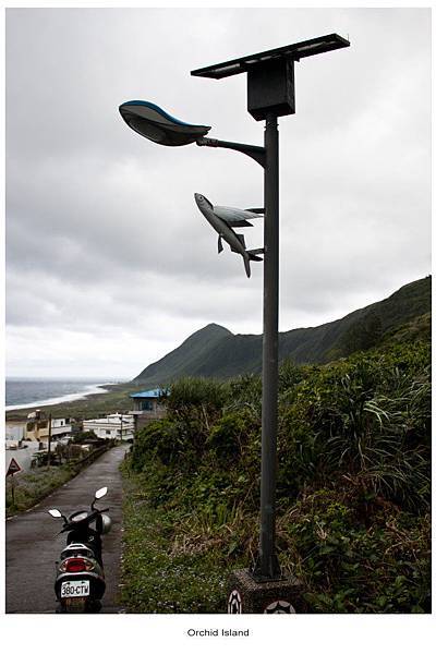 野銀部落的路燈是整尾的飛魚造型,下方基座是船之眼。(飛魚看起來好好吃)