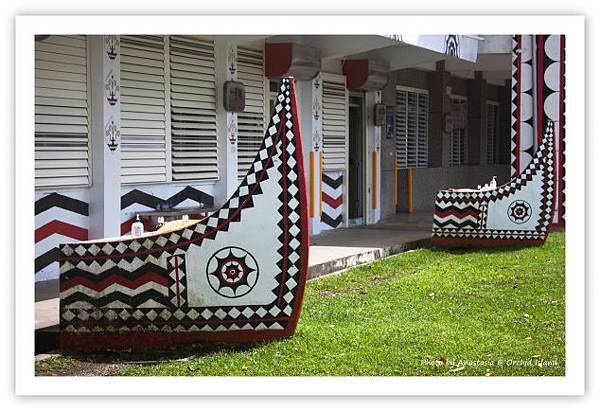 可以看到有一艘拼板舟還沒有開眼,每一艘拼板舟都會有一個輪狀的太陽眼睛(照片右下方)。