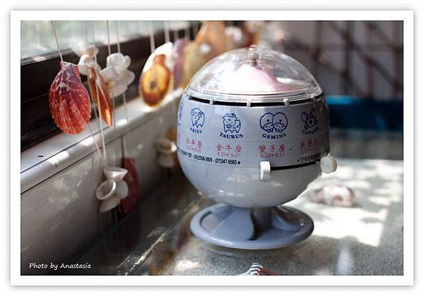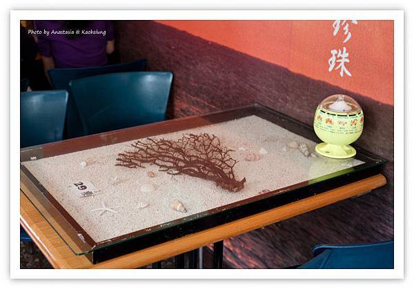 點完餐,開始到處拍照,貝殼情人的桌子是透明玻璃,裡面裝飾著白砂與各式各樣的貝殼還有海星。