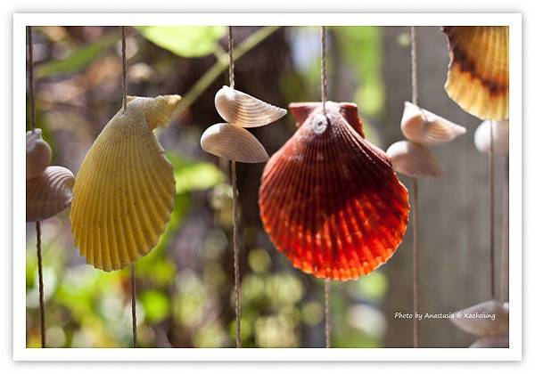 貝殼窗簾,風吹的時候貝殼碰撞,會發出清脆的聲音,不知道為什麼很有夏天的感覺。