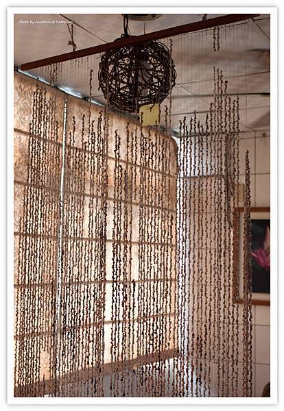 這也是個有趣的東西,遠看是簾子,原以為是貝殼串成的。