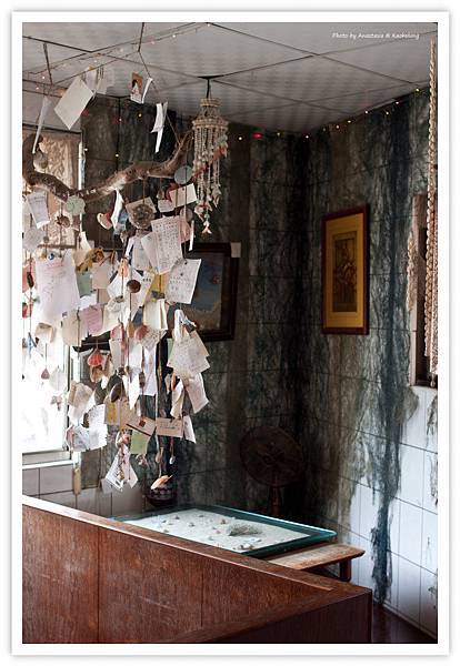 佈滿牆面的漁網與霓虹小燈,還有許願留言小紙張,交織成說不出來的情趣,姑且稱為混搭風吧。XD