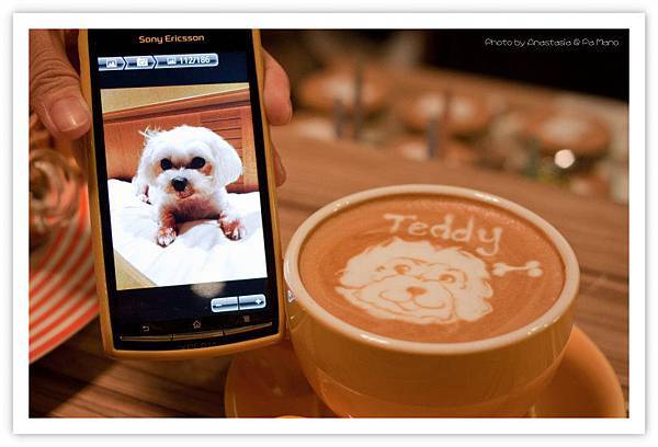 毛毛怪被畫在拉花上面超可愛的,老闆還多畫了一根骨頭。XDDD