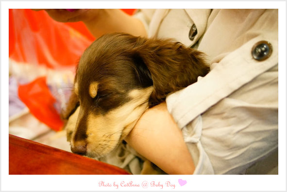 隔壁桌的小小臘腸,軟綿綿的,還是幼犬的愛睡覺時期,抱沒多久,眼睛就瞇上了,好可愛。
