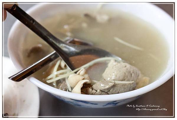 綜合下水湯,裡面有鴨胗、鴨腸、鴨肝等,薑絲味道很濃郁。