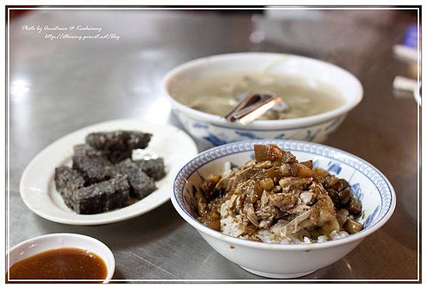 前天帶親愛的小殼兒來吃,兩個人點了鴨肉飯各一、米血、綜合下水湯。