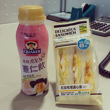 難得的小七午餐,突然不想吃米飯的中午,掛完號順道拎了三明治和薏仁漿。