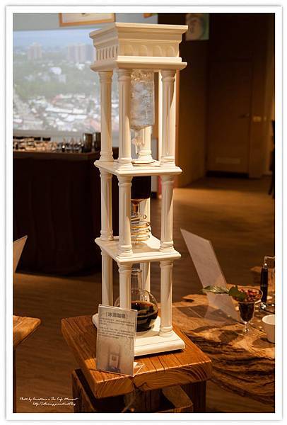 冰滴咖啡,後面投影布幕上有著左營地區的365度全景。