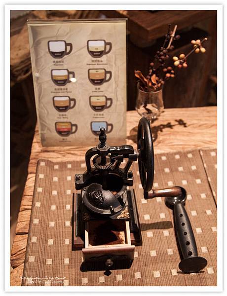 停好車,先看到大大的咖啡杯看板,上面印滿手繪咖啡豆、咖啡器具插圖。
