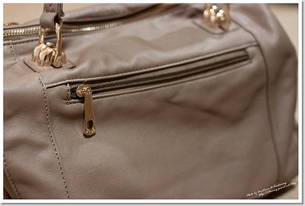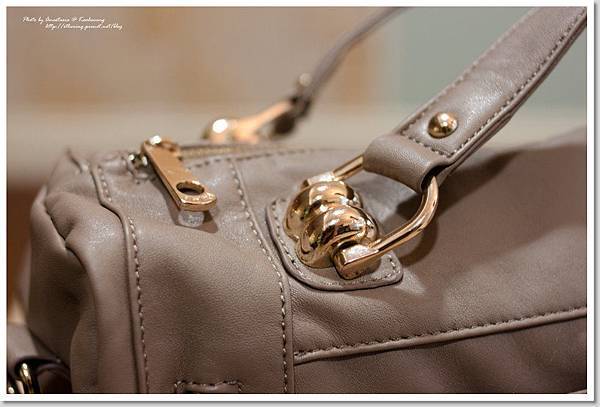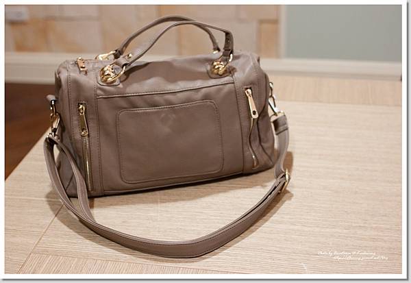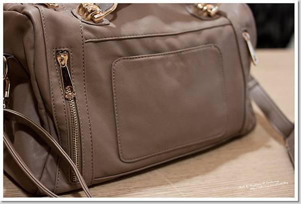 皮質出乎意料的好,玫瑰色金屬配件極有質感。附有一條長背帶可以側背與肩背。