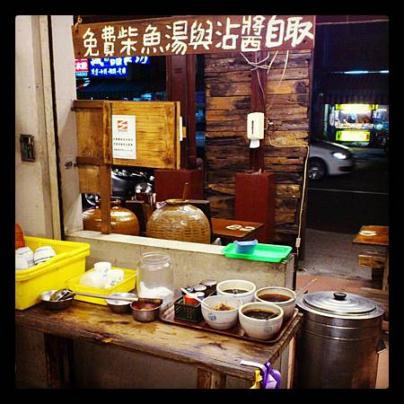 免費的柴魚湯,湯鍋內有大大的柴魚塊。