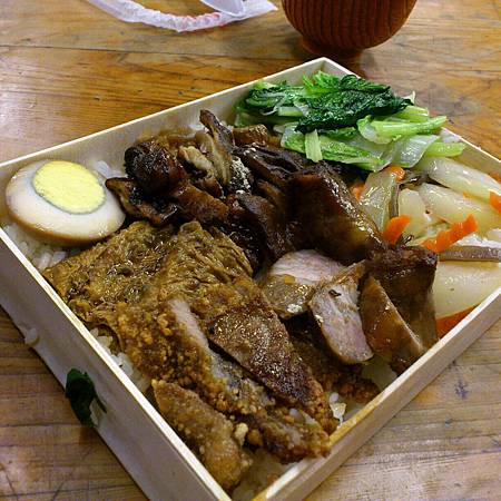 我的香腸+排骨飯,他們家的黑香腸真的很特別,有種奇妙的味道,會讓人上癮卻很難敘述的那種。