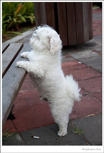 花花還有個厲害的地方,不像一般公狗會抬腳,愛乾淨的花花為了不要踩到,會用前腳站著倒立上廁所,第一次看到的時候超傻眼的