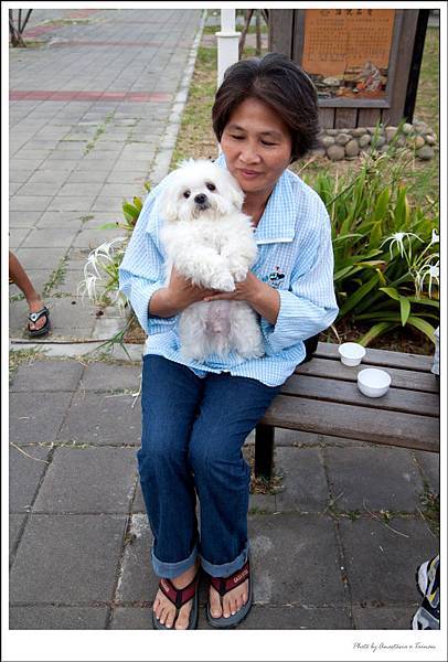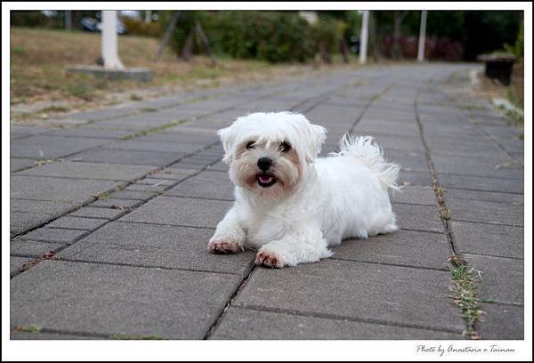 回家的傍晚,陪著媽媽一起散步,一群小白狗圍繞在身邊,有小小滿足了以前總嚷嚷著要養一窩瑪爾濟斯的夢想。XD