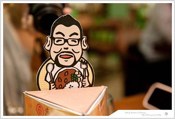 每個桌上的點菜立牌,上面是老闆的Q板插畫,據說和本人超像的。