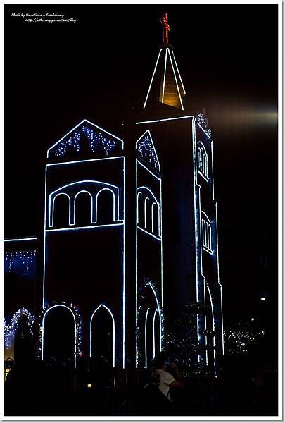 沿著建築輪廓的燈飾,勾勒出莊嚴的教堂,為這美好的聖誕月份帶來節慶氣息。