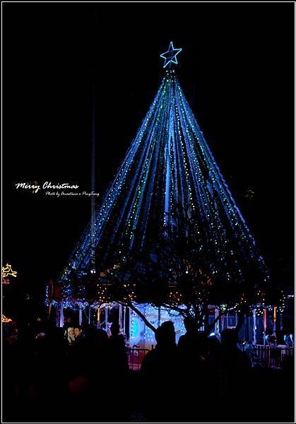 旋轉木馬聖誕樹,隨著燈光轉換顏色,星光遊樂園般夢幻。