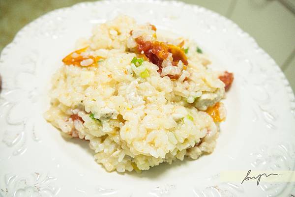 滴入一點點橄欖油,水的分量因為想要有燉飯的感覺,所以加了多一些。