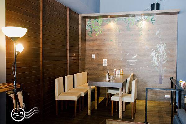 餐廳內以深色裝潢裝潢為主,部分亮麗的顏色與木質點綴,跳出沉重感。