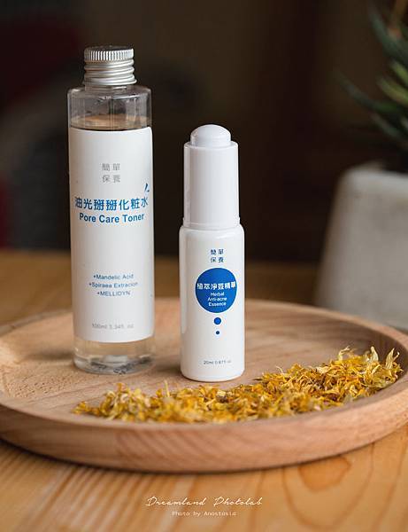 很有愛的油光掰掰化妝水和植萃淨荳精華。